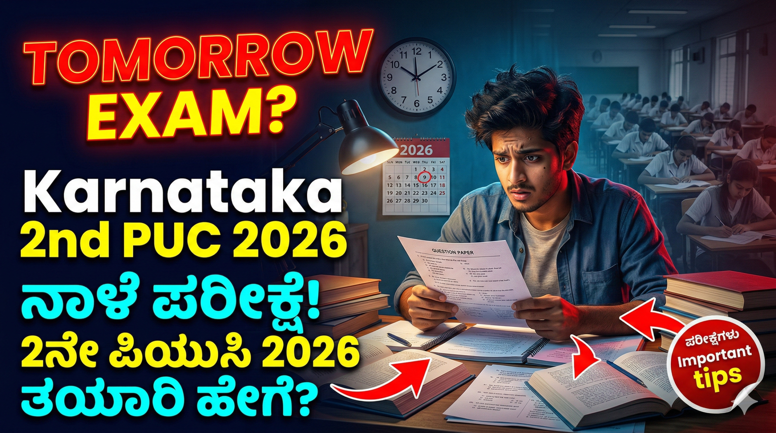 ಎಲ್ಲರಿಗೂ ನಮಸ್ಕಾರ.. ಕರ್ನಾಟಕ ರಾಜ್ಯದ ದ್ವಿತೀಯ ಪಿಯುಸಿ ವಿದ್ಯಾರ್ಥಿಗಳಿಗೆ ನಾಳೆಯಿಂದ ವಾರ್ಷಿಕ ಪರೀಕ್ಷೆ ನಡೆಯಲಿದ್ದು ನಮ್ಮ ದೇಶದಲ್ಲಿ ಇತರ ರಾಜ್ಯಗಳಿಗೆ ಹೋಲಿಸಿದರೆ ಕರ್ನಾಟಕದ ಪಿಯು, ಉತ್ತೀರ್ಣತೆಯ ಸ್ಥಾನ 26ನೇ ಸ್ಥಾನದಲ್ಲಿದೆ ಇದನ್ನು ಕನಿಷ್ಠ 10ನೇ ಸ್ಥಾನದ ಒಳಗೆ ತರಬೇಕು ಎಂಬ ಎಲ್ಲ ಪ್ರಯತ್ನವನ್ನು ರಾಜ್ಯ ಸರ್ಕಾರದಿಂದ ಮತ್ತು ಪರೀಕ್ಷಾ ಮಂಡಳಿ ಇಂದ ನಡೆಸಲಾಗುತ್ತಿದೆ ಈಗಾಗಲೇ ದ್ವಿತೀಯ ಪಿಯುಸಿ ಪರೀಕ್ಷೆಗೆ ಸಿದ್ಧರಾಗಿರುವ ವಿದ್ಯಾರ್ಥಿಗಳಿಗೆ ಮಾದರಿ ಪ್ರಶ್ನೆ ಪತ್ರಿಕೆಗಳನ್ನು ನೀಡಿ ಪೂರ್ವ ಸಿದ್ಧತಾ ಪರೀಕ್ಷೆಗಳನ್ನು ನಡೆಸಿ ಪರೀಕ್ಷೆಗೆ ಸಿದ್ಧಪಡಿಸಲಾಗಿದೆ ಇದೀಗ ದ್ವಿತೀಯ ಪಿಯುಸಿ ವಿದ್ಯಾರ್ಥಿಗಳಿಗೆ ನಾಳೆಯಿಂದ ಅಂದರೆ ಫೆಬ್ರವರಿ 28ನೇ ದಿನಾಂಕದಿಂದ ಪರೀಕ್ಷೆ ನಡೆಯಲಿದ್ದು ಈಗಾಗಲೇ ರಾಜ್ಯ ಸರ್ಕಾರದಿಂದ ಮತ್ತು ಪರೀಕ್ಷಾ ಮಂಡಳಿಯಿಂದ ಎಲ್ಲಾ ರೀತಿಯ ಸಿದ್ಧತೆಗಳನ್ನು ಮಾಡಿಕೊಳ್ಳಲಾಗುತ್ತಿದೆ.